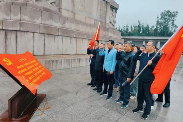 在竞技乐趣之外,集团党总支更以红色教育为抓手,组织“忆初心”主题活动,引导党员职工从革命历史中汲取奋进力量。10月12日上午9:00,党总支党员、入党积极分子及棋牌类竞技决赛的部分队员们共同前往淮海战役烈士纪念塔,开展沉浸式红色学习。